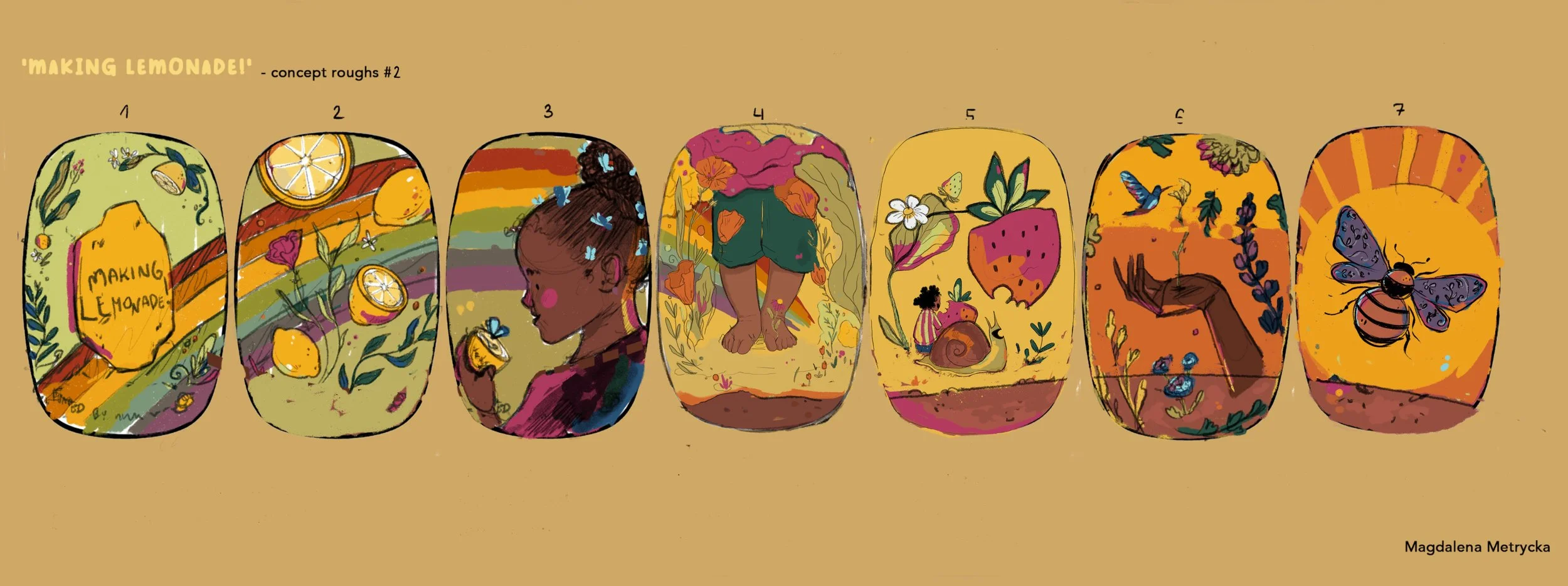 After a meeting with the project coordinator, I started with research and a series of rough sketches on my ipad. Then moved on to color roughs. The final designs were done in vector in Adobe Illustrator. Once finished and approved, I send all the files off to a printing company, who put them onto large weather-resistant aluminum panels ready to be hung in the garden!